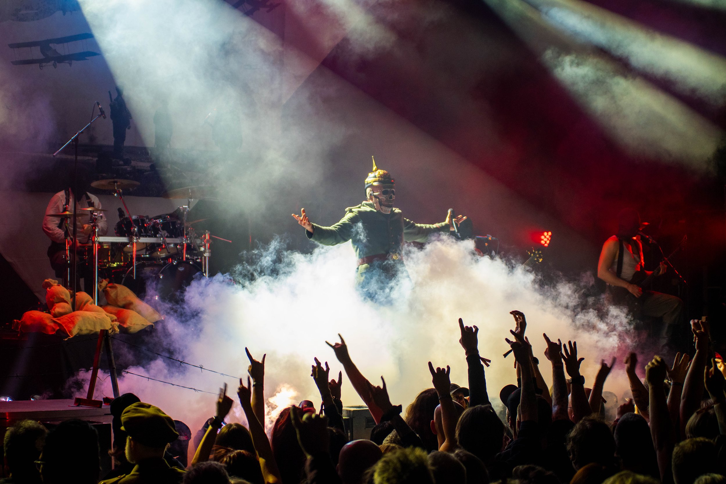 Instead of glorifying war, Kanonenfieber focuses on historical accuracy, anti‑war themes, first‑hand accounts from soldiers and archival documents from World War I. Every lyric is based on real letters, diaries, and military reports. The goal is to show the brutality and human cost of war, not to romanticize it. Noise uses verified historical documents as the foundation for the lyrics. This gives the music a documentary‑like quality. Live performances feature WWI‑inspired uniforms, gas masks, and stage props. Their show is theatrical, but always respectful of the subject matter. The music mixes blast beats and tremolo riffs , melodic passages, spoken‑word samples and atmospheric interludes. The Music is heavy, but also surprisingly emotional.